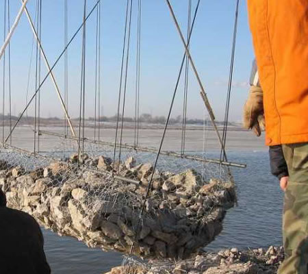 1.海洋治水構建物的建設:牢固性和柔韌性*強的網兜可很好的適應海底各種復雜地勢用于海洋通信線路、石油輸送管道及污水排放管道的防護。