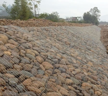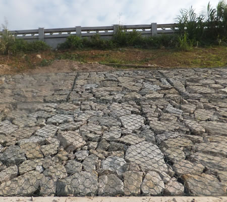 石籠網(wǎng)護(hù)坡還有較好的抗沖性。石籠網(wǎng)護(hù)坡要應(yīng)用在河岸,海邊堤坡防護(hù)長(zhǎng)期經(jīng)受風(fēng)浪拍打侵蝕但石籠防護(hù)工程的防沖系數(shù)是*般拋石防護(hù)工程防沖系數(shù)的兩倍,石籠護(hù)墊防護(hù)工程中的塊石即使產(chǎn)生位移,此時(shí)變形后的護(hù)墊結(jié)構(gòu)將調(diào)整,達(dá)到新的平衡,而整體不會(huì)遭到破壞,從而有效保護(hù)岸坡土壤不遭破壞。因此安全系數(shù)高。